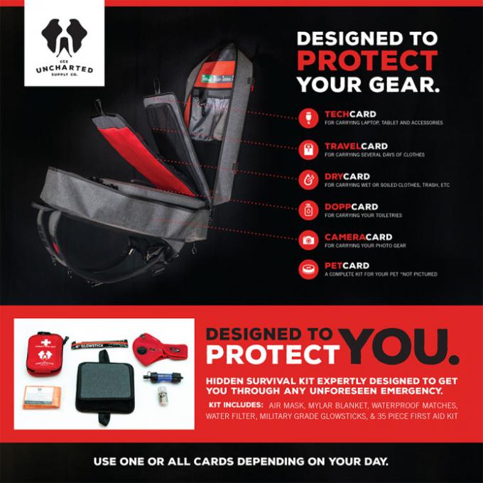 The 24Seven Backpack and CARD System from Uncharted Supply Co. Expertly designed to keep you safe in an emergency situation, while adapting to your everyday needs whether traveling, exploring, learning, or working.